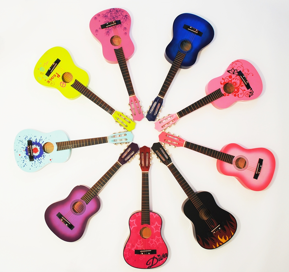 Kytary mají velmi hezké barevné zpracování. Dětem se budou líbit. Kytary ladí a jsou hratelné ! Vhodné i do hudebních škol.